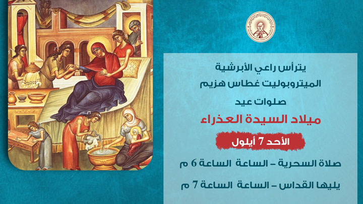 يترأّس راعي أبرشيّة بغداد والكويت وتوابعهما للرّوم المتروبوليت غطّاس هزيم صلوات عيد ميلاد السّيّدة العذراء، يوم الأحد 7 أيلول/ سبتمبر، وتتضمّن: