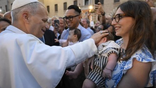 في باحة مقر حاكمية دولة حاضرة الفاتيكان وجه قداسة البابا لاوُن الرابع عشر مساء أمس السبت ٦ أيلول سبتمبر تحية إلى العائلات المشاركة في عيد العائلة والذي تنظمه الحاكمية منذ سنوات للعاملين في الفاتيكان، وقد كان هناك أمس عدد كبير من العائلات والأطفال. وبدأ الأب الأقدس تحيته للحضور مشيرا إلى كم هو جميل أن نجتمع معا وخاصة في هذا العيد المخصص للعائلات، ومن الجميل جدا رؤيتكم جميعا أيها الأطفال، قال قداسته. وتابع البابا حديثه إلى الصغار مشيرا إلى أنه ومثل محبة آبائهم وأمهاتهم لهم فإننا حين نتجمع كلنا بهذا الشكل نحب بعضنا البعض لأننا نشكل عائلة الله مع أخينا وأفضل أصدقائنا، يسوع.