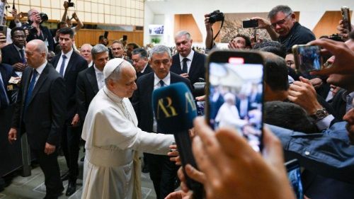 أضاف الحبر الأعظم يقول اسمحوا لي، إذًا، أن أُجدّد اليوم تضامن الكنيسة مع الصحفيين المعتقلين بسبب سعيهم إلى الحقيقة ونقلها، وأن أطالب بهذه الكلمات بإطلاق سراحهم. إنّ الكنيسة ترى في هؤلاء الشهود – لا سيّما الذين يروون وقائع الحروب حتى ولو على حساب حياتهم – مثالاً للشجاعة في الدفاع عن الكرامة والعدالة وحقّ الشعوب في المعرفة، إذ لا يستطيع الناس أن يتّخذوا قرارات حرّة إلا إن كانوا مطّلعين. إنّ معاناة هؤلاء الصحفيين تسائل ضمائر الأمم والمجتمع الدولي، وتدعونا جميعاً لكي نصون الخير الثمين لحرية التعبير والصحافة.