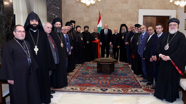وقام أعضاء اللّجنة التّنفيذيّة بزيارة إلى فخامة رئيس الجمهوريّة اللّبنانيّة العماد جوزاف عون، حيث بحثوا مع فخامته جملة مواضيع أبرزها الحضور المسيحيّ في المنطقة، ودور مجلس كنائس الشّرق الأوسط في تعزيز هذا الحضور كنسيًّا ومجتمعيًّا، وترسيخ أسس الحوار، والحفاظ على الكرامة الإنسانيّة في هذا الشّرق المعذَّب والمتألّم، مثمّنين الدّور الرّياديّ الّذي يضطلع به فخامته على رأس الدّولة اللّبنانيّة، مشيدين بالزّيارة التّاريخيّة الّتي قام بها قداسة البابا لاون الرّابع عشر إلى لبنان، بمحطّاتها المتنوّعة، وما حملته من دلالات هامّة تؤكّد تجذُّر المسيحيّين في لبنان والمنطقة، ومفهوم الحياة معًا، وتثبيت دعائم الاستقرار، منوّهين بالعمل المشترك للدّولة والكنيسة في إعداد هذه الزّيارة الّتي أتت على أرفع المستويات، وأبرزت صورة لبنان النّموذجيّة.