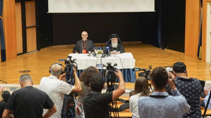 عقدت البطريركيّة اللّاتينيّة في القدس وبطريركيّة الرّوم الأرثوذكس المقدسيّة مؤتمرًا صحفيًّا اليوم، سلّط الضّوء على الزّيارة التّاريخيّة الّتي قام بها كلّ من بطريرك القدس للّاتين الكاردينال بييرباتيستا بيتسابالا، وبطريرك القدس وسائر أعمال فلسطين والأردنّ البطريرك ثيوفيلوس الثّالث، حاملَين رسالة تعزية ورجاء إلى شعبٍ منكوب، وصرخة ضمير إلى العالم الصّامت.