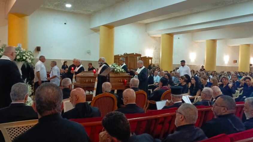 بعدها احتضنت قاعة الكنيسة صلاة الجنازة التي ترأّسها المطران سويف بمشاركة الآباء الكهنة.