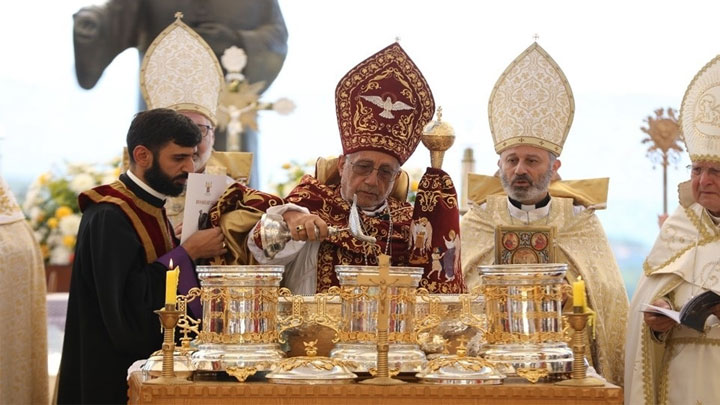 ترأّس كاثوليكوس بطريرك كيليكيا للأرمن الكاثوليك البطريرك روفائيل بيدروس الحادي والعشرون ميناسيان،القدّاس الإلهيّ الاحتفاليّ في دير سيّدة بزمّار البطريركيّ، على مدرّج “القدّيس إغناطيوس مالويان”، كرّس خلاله الميرون المقدّس، “في محطّة كنسيّة تاريخيّة تحمل في جوهرها معاني الوحدة والتّجدّد الرّوحيّ”.