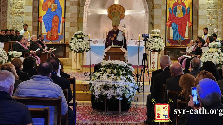 وترأّس بالمناسبة، بطريرك السّريان الكاثوليك مار إغناطيوس يوسف الثّالث يونان رتبة الجنّاز والدّفن، في كنيسة دير سيّدة النّجاة البطريركيّ- الشّرفة، عاونه فيها لفيف من المطارنة، بحضور عدد كبير من الإكليروس وجمع غفير من المؤمنين في طليعتهم عائلة الرّاحل يتقدّمها شقيقه كاهن رعيّة القدّيسة تريزيا الطّفل يسوع- زحلة المونسنيور أنطوان حمزو.